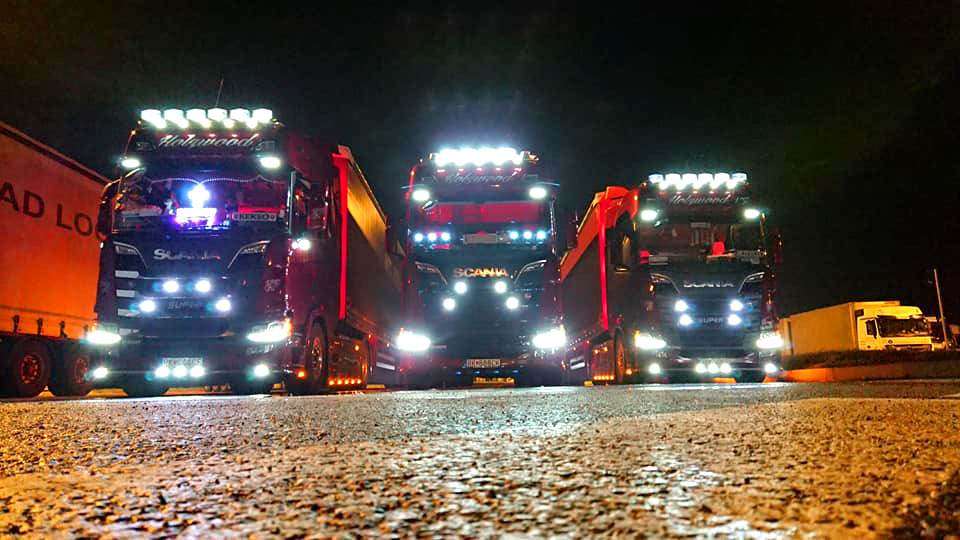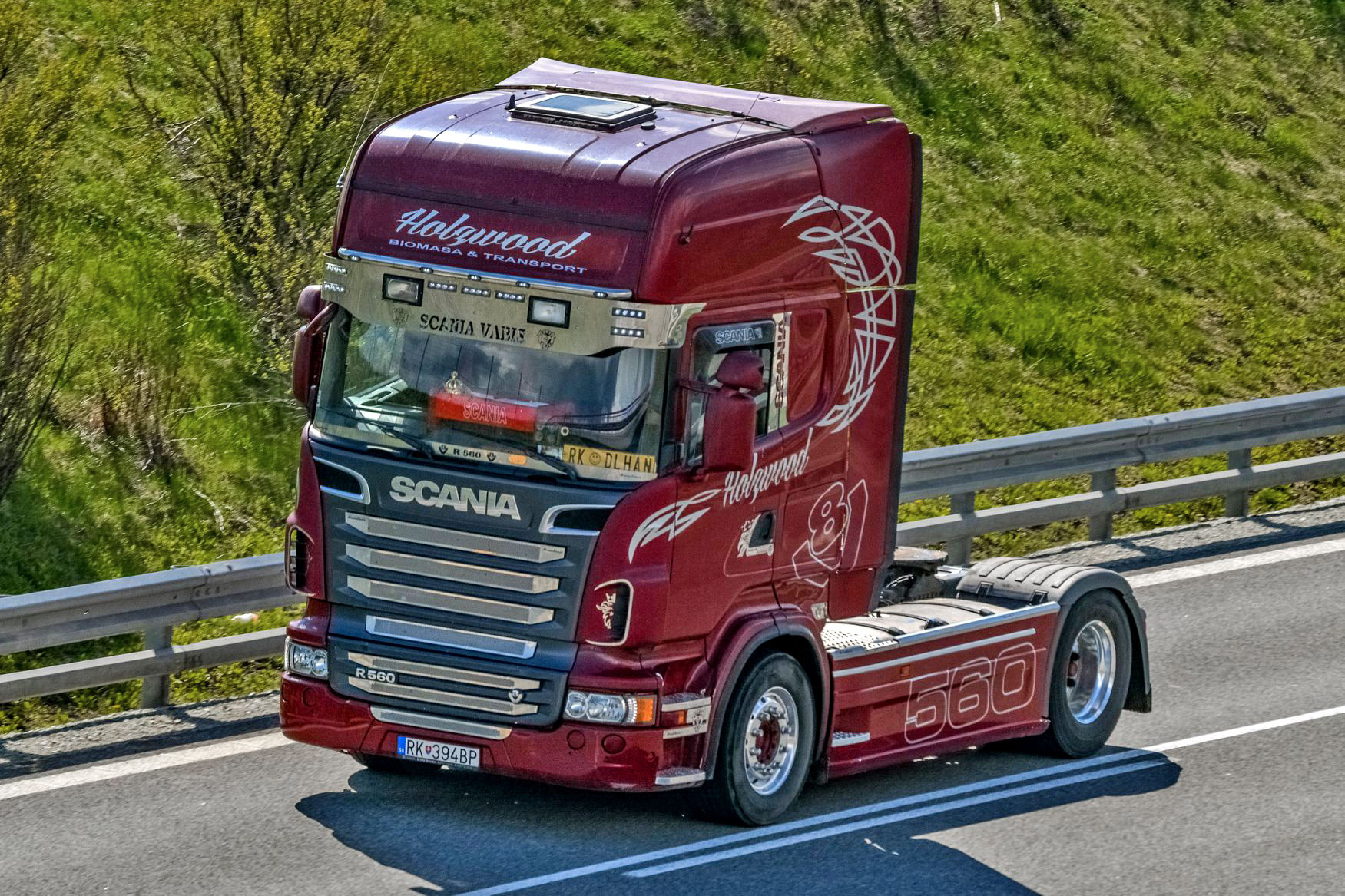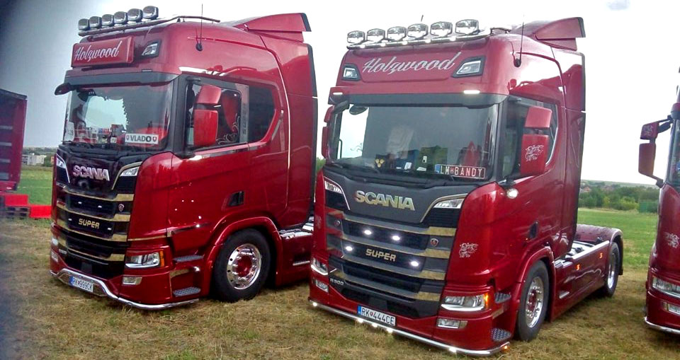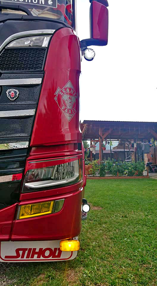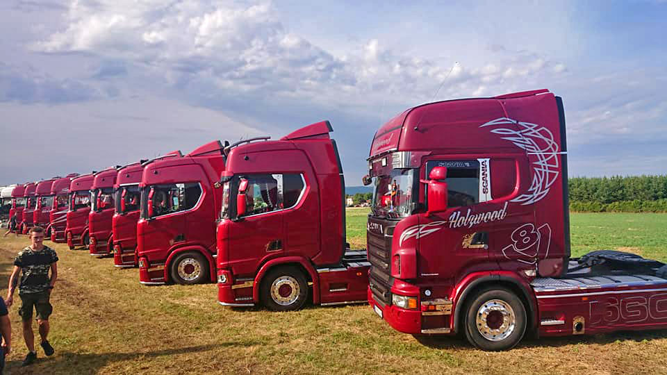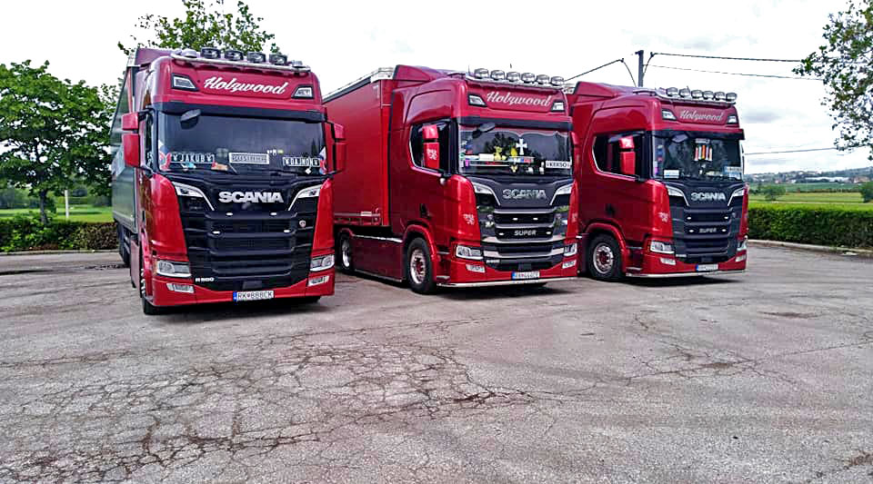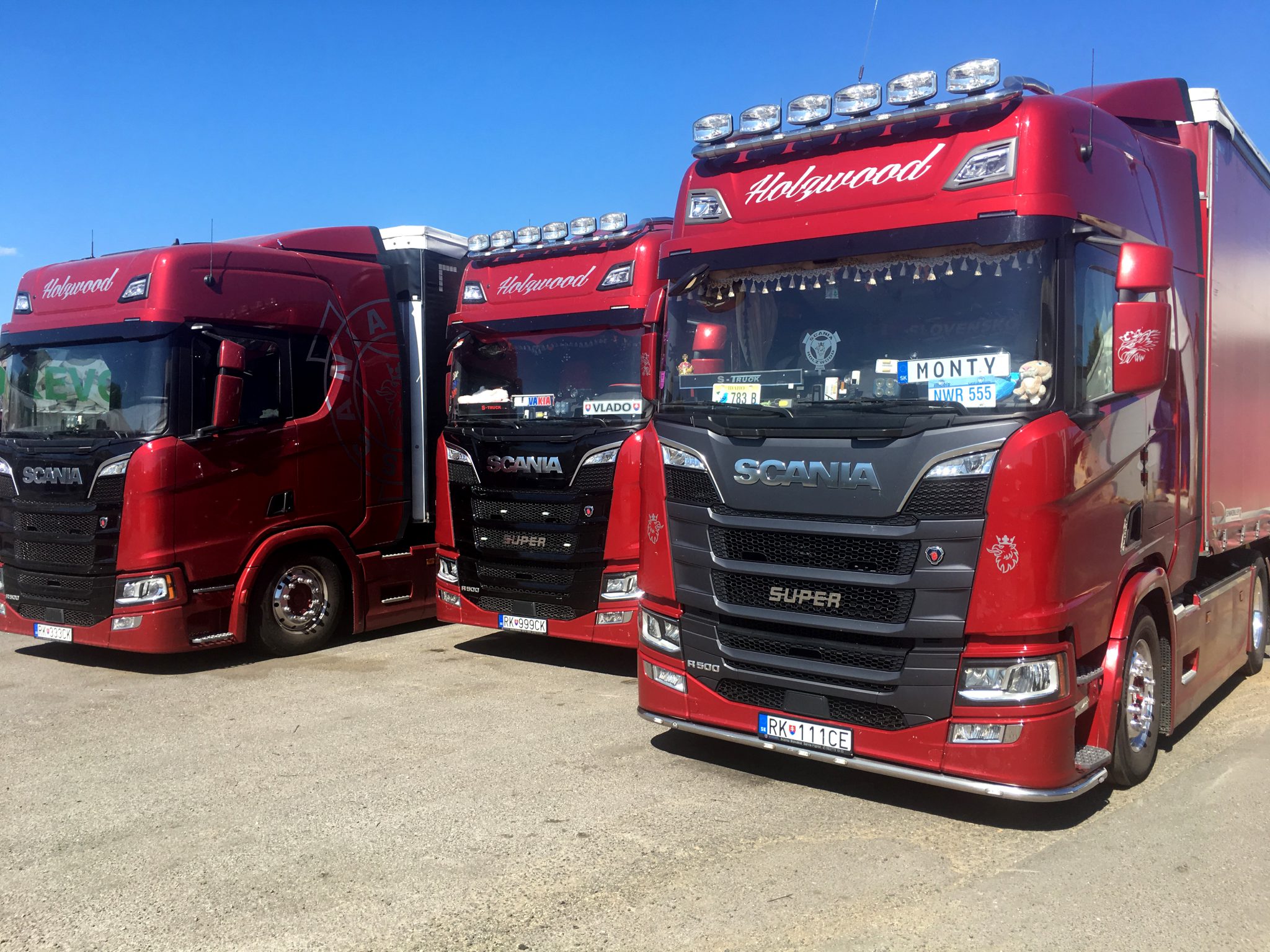 Máme k dispozícii vlastný vozový park – ťahače značky Scania, plachtové a muldové návesy značky Schwarzmüller a návesy s posuvnou podlahou značky Peischl.
